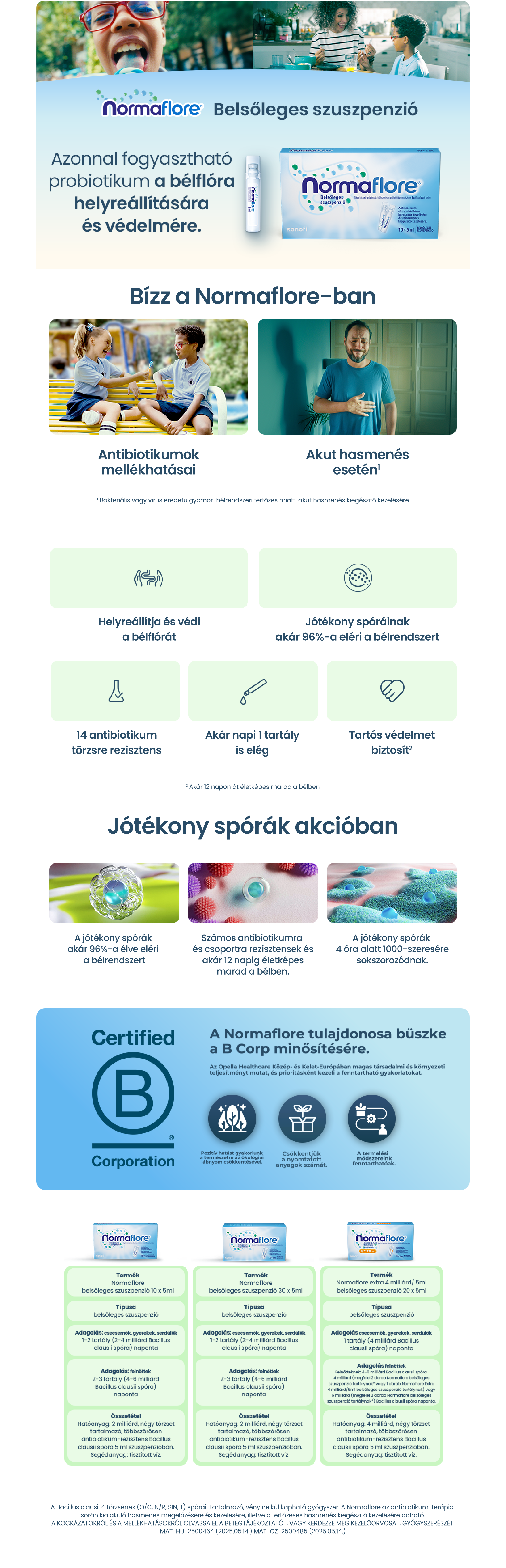 A Normaflore probiotikum a nem patogén, a bél normál flórájához tartozó, négy fajta, antibiotikum-rezisztens Bacillus clausii törzs (O/C, N/R, SIN, T) spóráit tartalmazó készítmény.